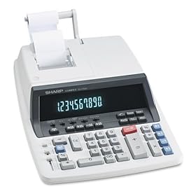 Sharp Electronics Products - 12-Digit Calculator, 2-Color Printing, 7-1/2"x10-1/4"x2-1/2" - Sold as 1 EA - Calculator features a large easy-to-read 12-digit blue fluorescent display. Prints 2.1 lines per second. Other features include two-color serial printer, four-key memory, floating or fixed decimal, markup key, item counter, and heavy-duty metal paper holder. Includes clock, calendar, tax keys, cost/sell/margin, grand total and average keys. Change Calculation mode allows calculator to perfo: Electronics
