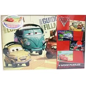 Cars 2 4 Wood Puzzles In Wooden Storage Box: Toys & Games