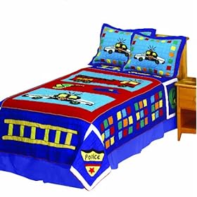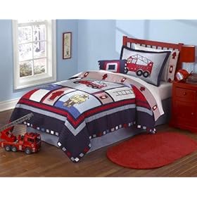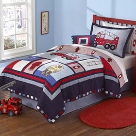 Fireman Firetruck Kids Boys Quilt Bedding Set Twin: Home & Kitchen