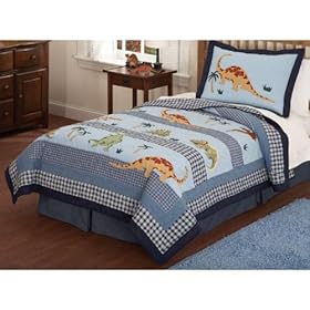 Dino Dave Blue Twin Quilt with Pillow Sham: Toys & Games