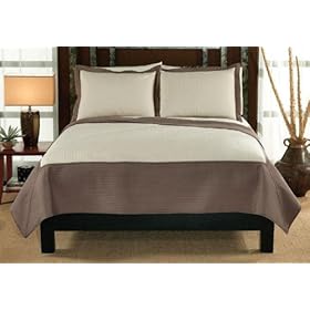 American Mills Emory Stripe Full/Queen Quilt Set, Taupe: Home & Kitchen