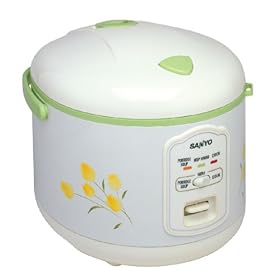 Sanyo ECJ-N55F 5-1/2-Cup Rice Cooker, White with Green Accents and Flower Design: Kitchen & Dining