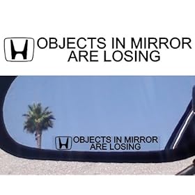 (2) Mirror Decals " OBJECTS IN MIRROR ARE LOSING" for HONDA ACCORD CR-V CRX CRV CROSSTOUR CIVIC DEL SOL ELEMENT FIT INSIGHT ODYSSEY PASSPORT PILOT PRELUDE RIDGELINE S2000 HYBRID: Home Improvement