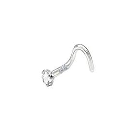 14KT White Gold Nose Ring Screw 2.5mm CZ 22G FREE Nose Ring Backing: Jewelry