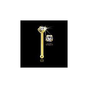 18 gauge - 14K Gold Nose Bone with 2mm Genuine Round Diamond - High Quality: Jewelry