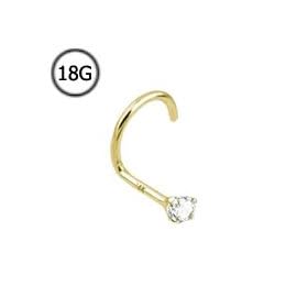 18 Gauge 1/4" Yellow Gold 1.5mm Clear Cubic Zirconia Bioplast Nose Ring: Jewelry