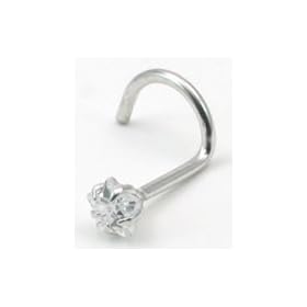 1.5mm REAL DIAMOND 14kt White Gold Jewel Nose Ring Twist / Screw: Jewelry
