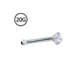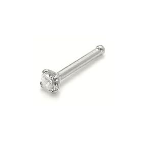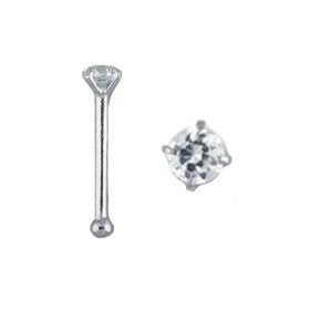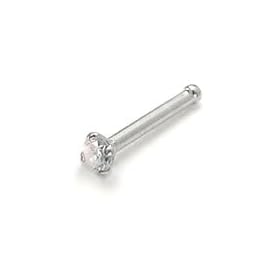 22 gauge - 14K White Gold Nose Bone with 1.5mm Round CZ - High Quality: Jewelry