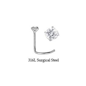 316L Surgical Steel Nose Screw Ring 2mm CZ 20G FREE Nose Ring Backing: Jewelry