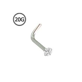 20 Gauge L-Shaped - 14K White Gold Clear 1.5mm CZ Marquise Nose Ring: Jewelry