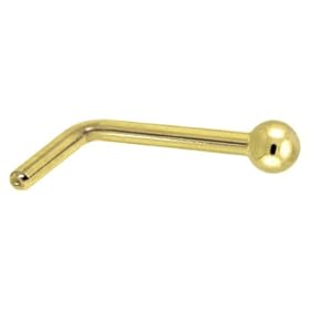 Solid 14KT Yellow Gold 1.5mm Ball L-Shaped Nose Ring - 20 Gauge: Jewelry