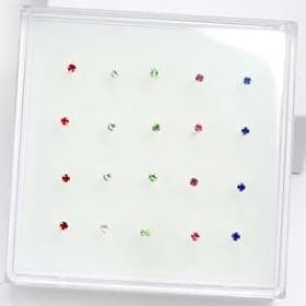 Sterling Silver Nose Studs with 1.8mm Color CZs Hand Set - Straight End - Set of 20 Pcs in a Case - Blue, Pink, Green, Clear, and Red: Jewelry