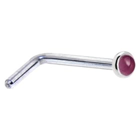 Solid 14KT White Gold 2mm Genuine Raspberry Rhodolite Garnet L-Shaped Nose Ring - 18 Gauge: Jewelry