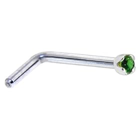 Solid 14KT White Gold 1.5mm Genuine Emerald L-Shaped Nose Ring - 18 Gauge: Jewelry