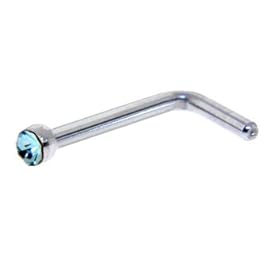 Aqua Gem Micro Nose Ring L-Shaped: Jewelry