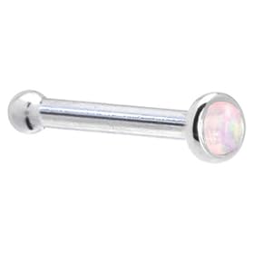 Solid 14KT White Gold 2mm Light Pink Synthetic Opal Nose Bone - 18 Gauge: Jewelry