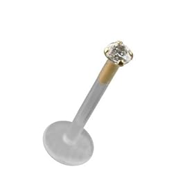 Bioflex Post 14K Solid Gold Push Fit 2.5mm Gem Set Labret: Jewelry
