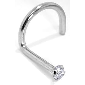 14KT White Gold Nose Ring Screw 1.5mm Genuine Diamond 18G FREE Nose Ring Backing: Jewelry