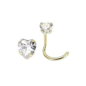 14KT Gold Nose Screw Ring 2.5mm Heart CZ 20G FREE Nose Ring Backing: Jewelry