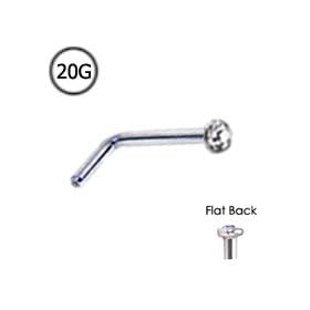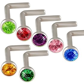 316L Surgical Steel Micro L Bend Nose Stud Ring 1.5mm Bezel Set Gem 20G FREE Nose Ring Backing: Jewelry