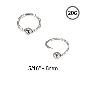 316L Surgical Steel Nose Ring Hoop Captive Bead Ring 5/16" - 8mm 20G: Jewelry