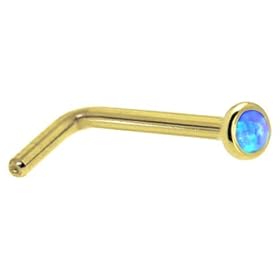Solid 14KT Yellow Gold 2mm Blue Synthetic Opal L-Shaped Nose Ring - 18 Gauge: Jewelry