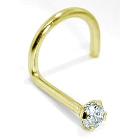2mm REAL DIAMOND Solid 14kt Yellow Gold Jewel Nose Ring Twist: Jewelry