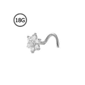 14KT White Gold Nose Screw Ring 4.5mm Christina Flower Cluster CZ 18G FREE Nose Ring Backing: Jewelry