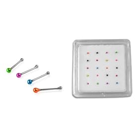 Sterling Silver Set of 20 Multi-Color Nose Stud Box 1.8 mm With End Ball: Jewelry