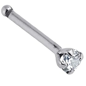 Platinum 1.5mm Genuine Diamond Nose Bone - 20 Gauge: Jewelry