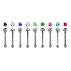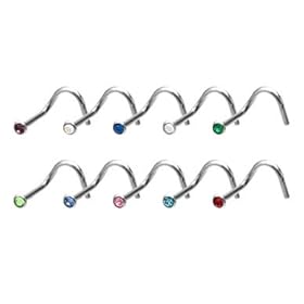 10 pc lot Nose Screw Purple, Pink, AB, Cz, Red, lt Green, Green, Blue, lt Blue, Aqua Surgical Steel piercing rings 18g 18 gauge: Jewelry