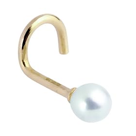 Genuine Pearl 14K Yellow Gold Nose Ring - Twist: Jewelry