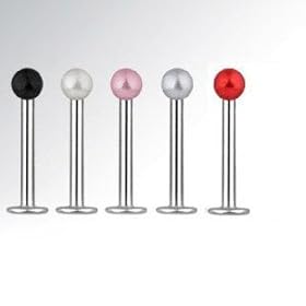 5 - 16g 3/8" 3mm Ball Surgical Steel Labret Pearl Coated Lip Ring L17 * Get ALL Five: Jewelry