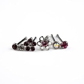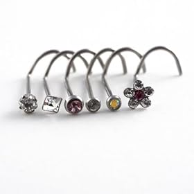 Nose pins - Surgical Steel 316L - FREE Super Saver shipping - twirl pins with AB crystal - in a attractive packaging - Beautiful and safe to wear nose pin with swarovski diamond: GlitZ JewelZ: Jewelry