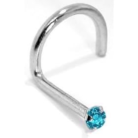 1.5mm Blue Zircon (December) - Solid 14KT White Gold Nose Twist / Screw: Jewelry