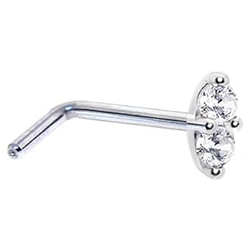 14KT White Gold L Bend Nose Stud Ring 2mm Genuine Diamond GH VS1-VS2 20G FREE Nose Ring Backing: Jewelry