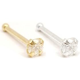 10KT Gold Nose Bone Ring 5.5mm Post 1.8mm Clear Gem 22G FREE Nose Ring Backing: Jewelry