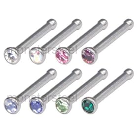 316L Surgical Steel Nose Bone Ring 1mm Bezel Set Micro Gem 18G FREE Nose Ring Backing: Jewelry
