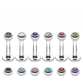 12- 16g 5/16" 3mm Cz Labret Lip Ring Monroe 12 Color L5 * Get All 12 Colors: Jewelry
