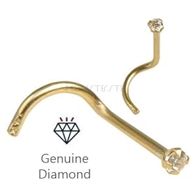 14KT Yellow Gold Nose Screw Ring 2mm Genuine Diamond GH VS1-VS2 18G FREE Nose Ring Backing: Jewelry