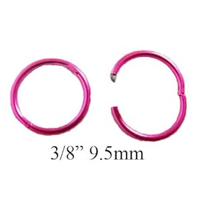 925 Sterling Silver Nose Ring Hinged Hoop 3/8" 9.5mm Pink 18G: Jewelry