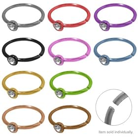 Anodized Titanium Heart Nose Hoop Rings with Cz Gem (High Polish Titanium): Jewelry