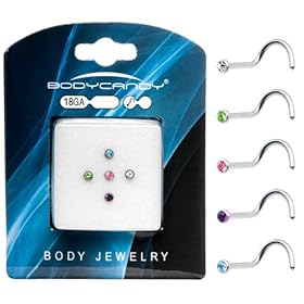18 Gauge Stainless Steel CZ Nose Ring Pack: Jewelry
