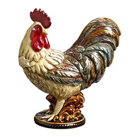 Grasslands Road Cucina Rich Color Ceramic Rooster On Roped Pedestal, 10-Inch: Home & Kitchen