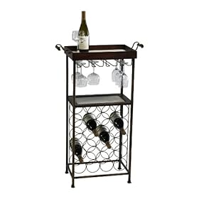WOODEN SERVING CART WITH 3 WINE BOTTLE HOLDERS: Home & Kitchen