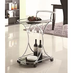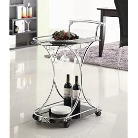 Serving Cart with Black Glass Shelves in Chrome Metal Frame: Home & Kitchen