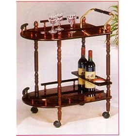 Traditional Cherry Finish Wood Serving Cart w/Brass Accents: Home & Kitchen