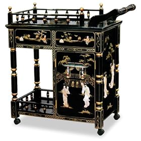 Black Lacquer Pearl Motif Tea Cart: Home & Kitchen