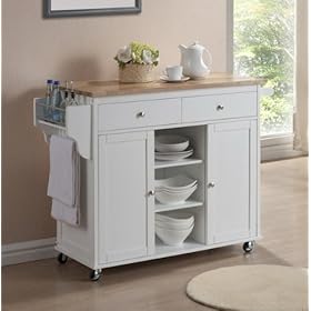 White & Natural Finish Wood Kitchen Storage Serving Cart: Home & Kitchen