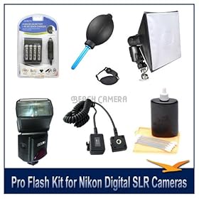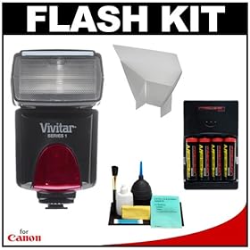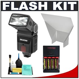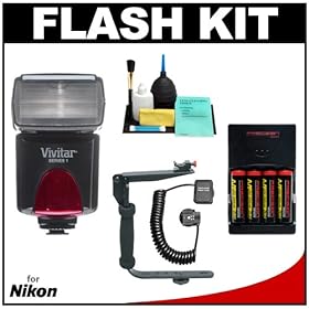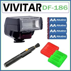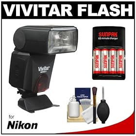 Vivitar DF183 AF SLR Flash + (4) AA Batteries + Deluxe Cleaning Kit for Nikon D40, D40x, D50, D60, D80, D90, D200, D300, D700, D3, D3x Digital SLR Cameras: Camera & Photo